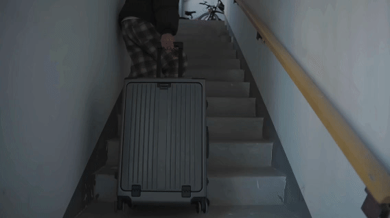 第二个“楼梯漂移”: 回老家难免要上台阶。我故意拉着它在台阶边缘磕磕碰碰,甚至让它侧着撞墙。因为有航空级铝合金包角护着,箱子最脆弱的四个角纹丝不动。