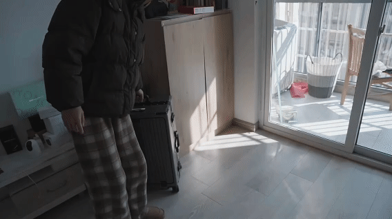 而普通箱子坐久了,轮子会撇,箱盖会塌。大家有踩坑的心里都知道,所以GaKior标榜能承重 100公斤,和常规箱子只有50公斤有着蛮大差异,对此我直接上硬核测试:测试一:肉身抗压
