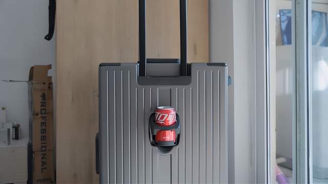 行李箱的反面设置了隐形杯托,用来在赶路时放饮料和矿泉水,手上不用拿什么东西,赶飞机时不慌不忙,从从容容。