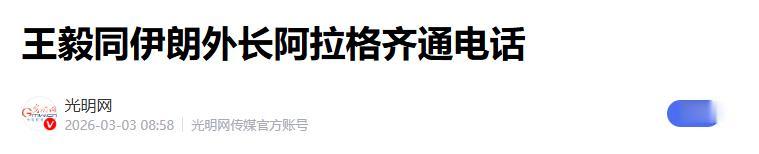 3.《王毅同伊朗外长阿拉格齐通电话》2026-03-03 08:58 | 来源:光明网