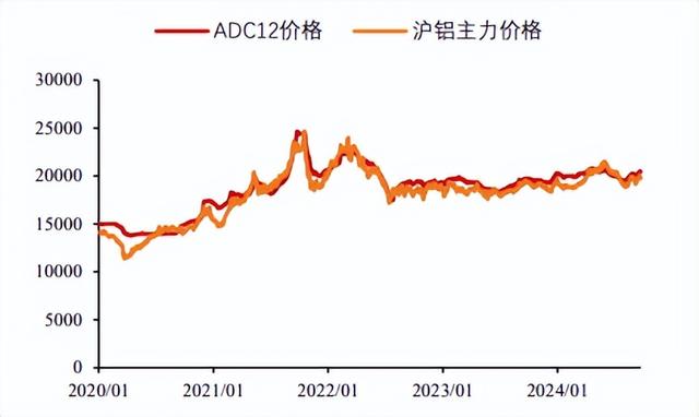 图 4: ADC12 和铝期货价格丨单位:元/吨
