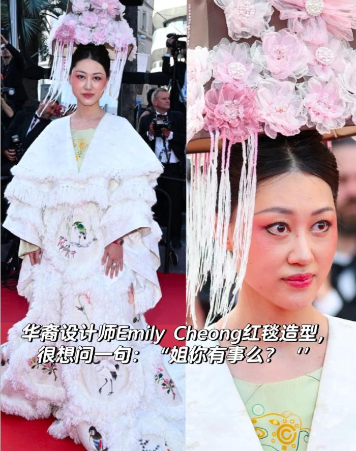 印度那姐们在走红毯时简直火力全开,对着镜头摇头晃脑,那模样简直跟超市门口那会飘的充气人偶似的。还有那华裔设计师,脸上那两抹高原红腮红,简直亮瞎眼,头上还插了一堆塑料花,就这造型,殡仪馆的化妆师都得自愧不如,直夸他内行。