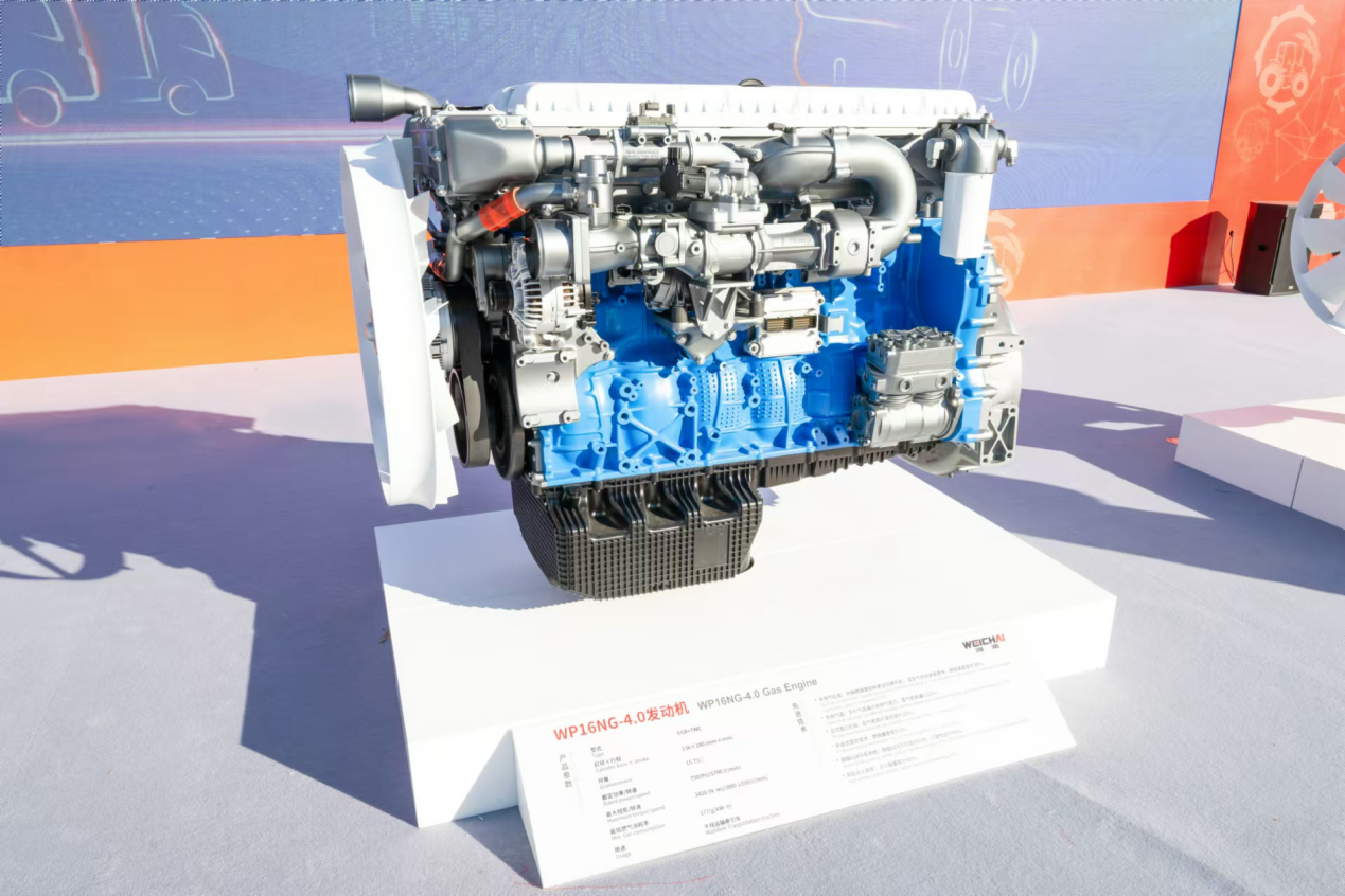 潍柴此次展出的诸多新品中,WP16NG-4.0燃气发动机是最有代表性的产品之一,该款发动机通过一系列高通低阻空气系统技术,复合流动速燃技术,高精度气体控制技术,防失火先进点火技术,令整车气耗降低6%,相比柴油车,一年能带来15万元节油收益。