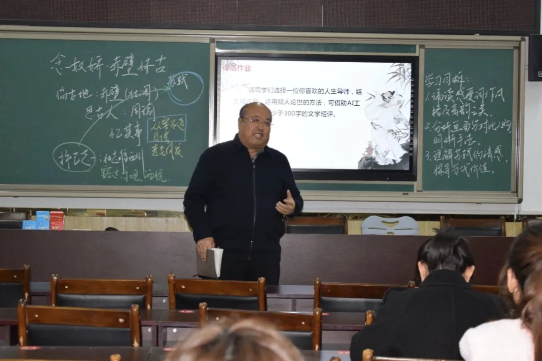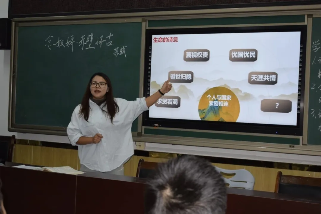 为积极探索大数据、人工智能技术与教育教学的深度融合路径,提升教育教学管理与评价科学化水平,11月5日,校长助理朱俊平、苏福祥,高三教师石丽娜、白雪老师赴太原市实验中学校参加了“大数据下的高中教育教学管理与评价高级研修班”活动。返校后,白雪老师以高中语文经典篇目《念奴娇·赤壁怀古》为例,将活动课堂进行移植,校领导、高三全体教师及高一二年级青年教师共同参与。本次移植课旨在与学校全体教师碰撞教学思维,共同探讨AI技术与教学的创新结合。