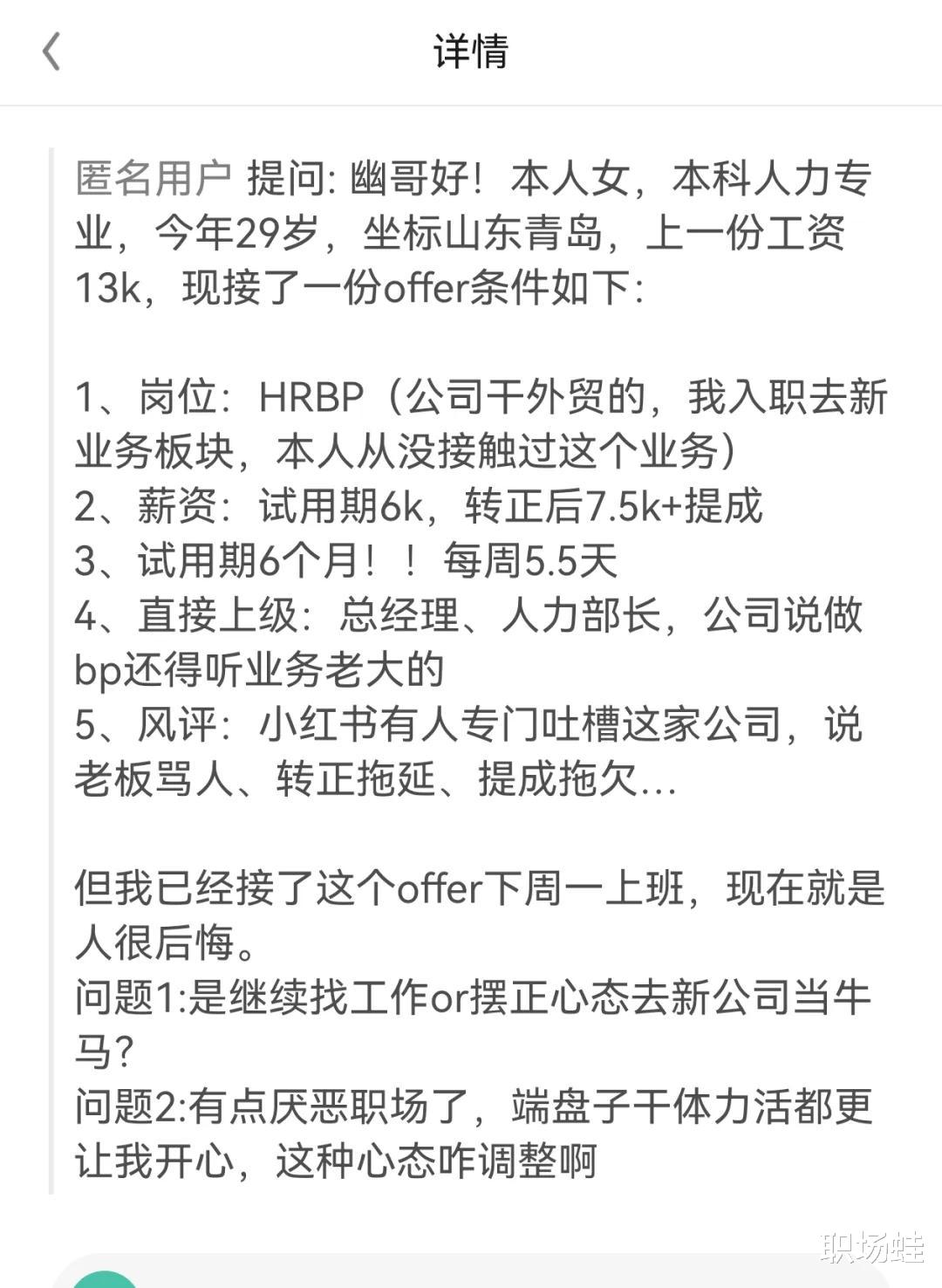 工作氛围你要逐渐适应,当初的国企没有老板,大家都不是股东,现在去了私企,老板就是资本家了,骂人是常有的事,小红书上有人专门吐槽这家公司,说老板骂人、转正拖延、提成拖欠…...算大概率如此,但不代表就不能入职。