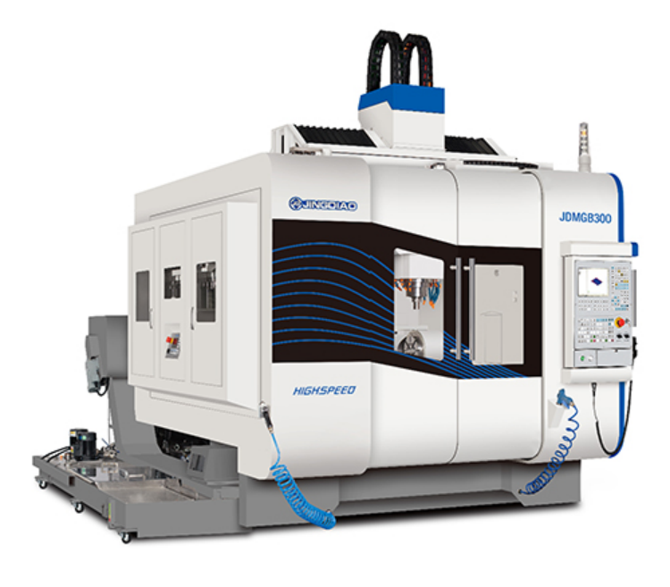 在CIMT2025展会现场,北京精雕五轴高速加工中心JDMGB300尽显风采——采用动梁龙门结构,配A、B轴转台,并设计了可独立驱动的双A轴,两个A轴可同步或单独旋转。A、B轴定位精度达到±5″,可以精准、稳定实现叶片、细长轴、薄壁壳体等零件五轴联动或定位加工。其数控系统的高速前瞻功能,在保证尖角加工精度的同时,使加工效率提高33.6%。