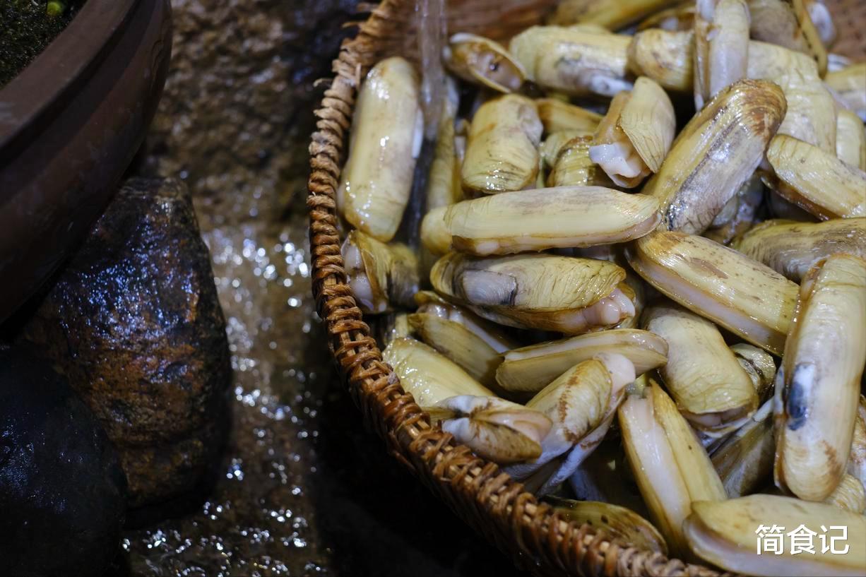 蛏子盐水静养1小时,开水焯30秒开口即捞