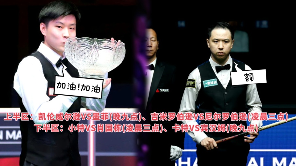 下半区:小特VS肖国栋(凌晨三点)、卡特5-1宾汉姆(晚九点)