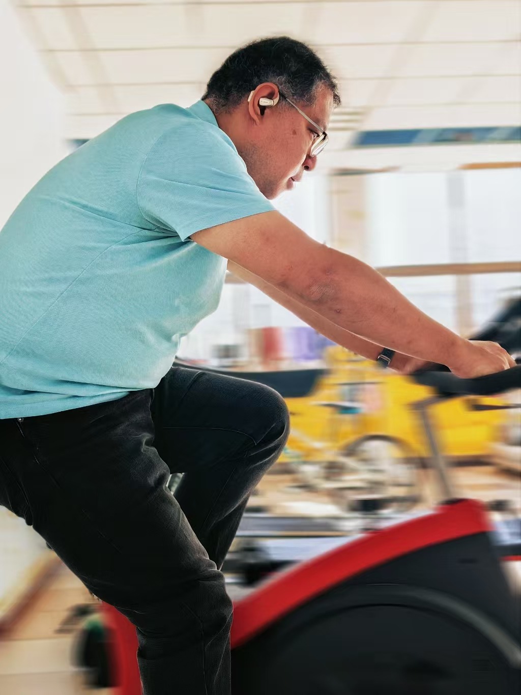 早晨骑自行车健身,有IPX5级防水,不怕出汗,让运动变得不那么物料。