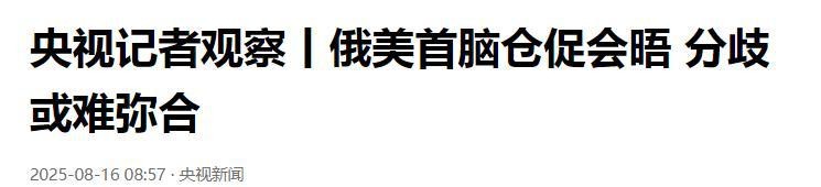 央视新闻:2025-08-16:央视记者观察丨俄美首脑仓促会晤 分歧或难弥合