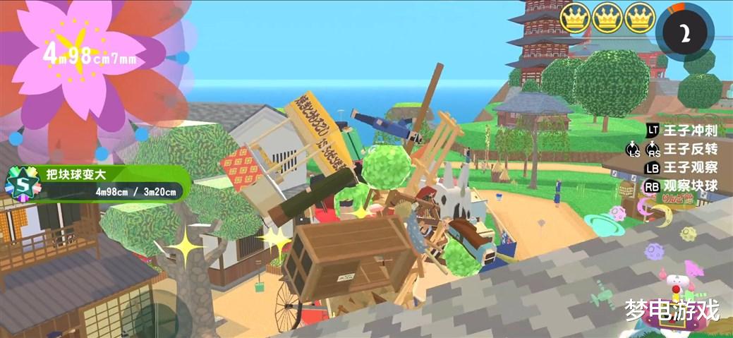 如果要给没有接触过这个系列的人很简单地说明玩法,我想应该用《大鱼吃小鱼》。玩家扮演的王子操控块球,需要滚起场景内物品让块球变大,在碰撞到滚不进去的物品会有一小段硬直。通常,玩家都需要将块魂滚得很大,整体上就是蚕食目前可以滚动的物品然后向着更高级的物品进发,多数关卡采取的是时间限制,一部分使用速通与卷进某种类型物品作为条件。