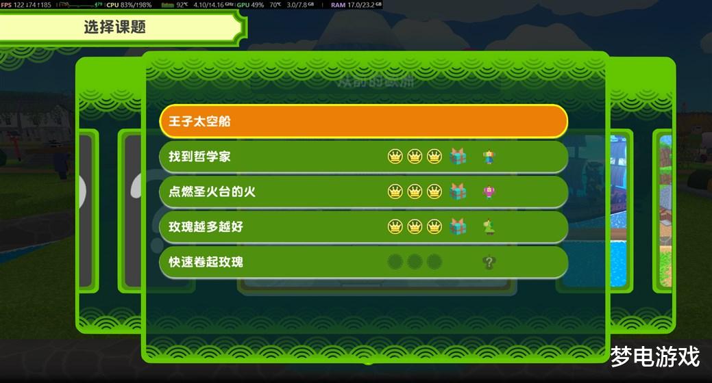 坦白来说,本作最吸引我的地方是万代旗下手游《学院偶像大师》的Saki所演唱的联动曲目,许多明星歌手也有参与其中,魔性又洗脑的音乐是我前往下一个关卡的主要动力,收集过程中听上saki的这一口大冰让我充满了动力(课题关卡初次通关无法更换曲目,之后再挑战可以使用自己设置的歌单)。