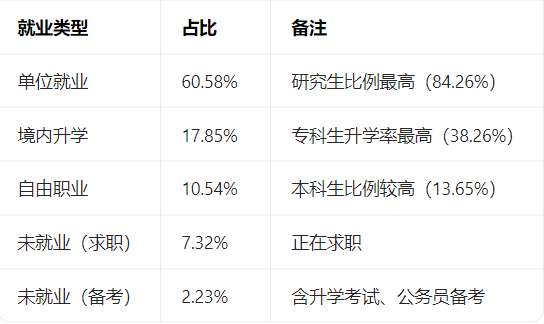 总体规模:2025届毕业生共6108人,其中研究生1271人(20.81%)、本科生4424人(72.43%)、专科生 413 人(6.76%)。