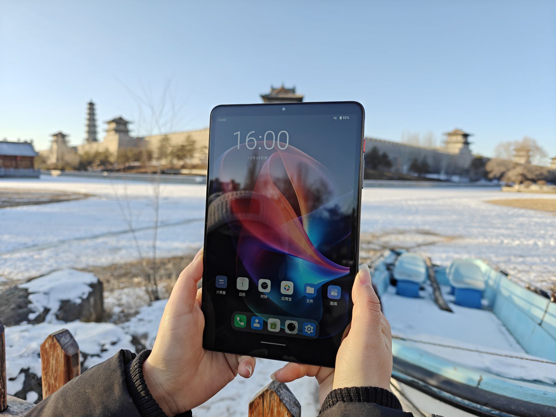 这款平板最令我惊喜的是尺寸小巧,8.4 寸黄金尺寸搭配微曲屏,视觉通透且握持趁手,单手掌控毫无压力,机身采用全金属材质打造,触感细腻且质感舒适,同时具备耐磨抗摔性能,日常使用无需过度担心磨损问题。重量控制在316g,比多数大屏手机还要轻便,单手握持毫无压力,无论是学生塞进书包,还是上班族揣进衣兜,都不会带来额外负担。边缘过渡顺滑,触控时不会有硌手的不适感,还能适配丰富的手势控制操作。机身背部设计简洁,仅放置单摄和闪光灯,整体线条流畅。