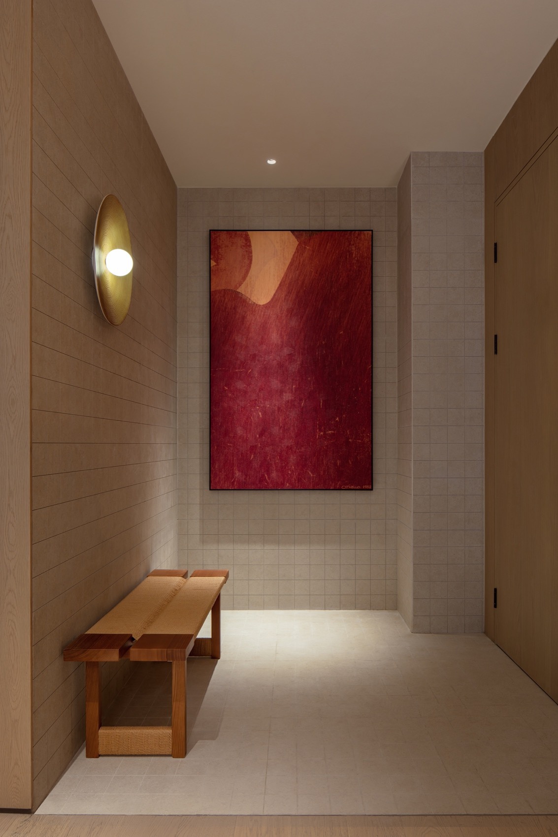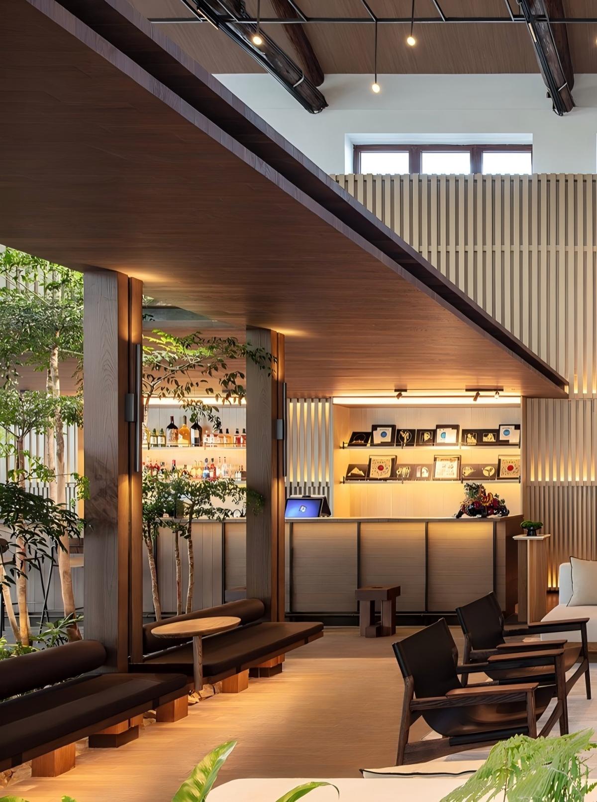 酒店设计中采用双坡屋顶呼应场地整体建筑风貌,为建筑内部提供采光的同时营造一系列丰富的空间体验,呼应内外空间相互渗透的园林式布局。材料呼应扬州传统建筑的小青瓦和以石造景的园林特色,使用手凿石板瓦和手凿肌理石材,运用现代手法重现古城记忆。