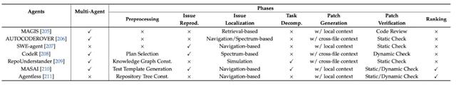 表 2: 面向端到端软件维护任务的 Agent 文献列表