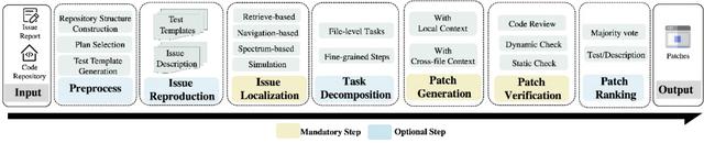端到端软件维护目前,面向端到端软件维护任务的 Agent 遵循着 “缺陷定位 - 补丁生成 - 补丁验证” 的基本工作流程;在此基础上,不同 Agent 选择性地引入了预处理、故障重现、任务分解、补丁排名等步骤。