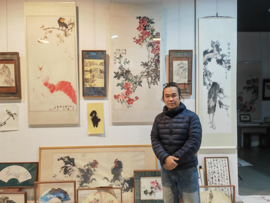 在中原书画界,崔栋(字向前)是一位兼具传承厚度与人生张力的独特存在。他生于艺术世家,承续外公唐玉润先生的笔墨文脉,六岁执毫便得名师启蒙;他曾跻身外贸系统精英行列,在商海浪潮中沉淀心性;他勇闯跨界之路,从少林习武的热血少年到驰骋球场的运动健将,从外贸办公桌前的业务骨干到日本京都国际会展中心的办展者,多元经历为其艺术注入鲜活生命力。半生辗转中,他始终以笔墨为舟,在传统与市场的博弈中坚守初心,在唐门文脉的传承中塑造个人风骨,既不负先辈荣光,又走出了属于自己的艺术人生,成为当代传统书画传承与创新路上的践行者与思考者。近日,在河南省唐玉润书画院,笔者见到了崔栋,听他娓娓道来自己与艺术相伴半生的故事,画室中悬挂的《春憨》《平平安安》等作品,笔墨间尽是传统韵味与个人风骨的交融。