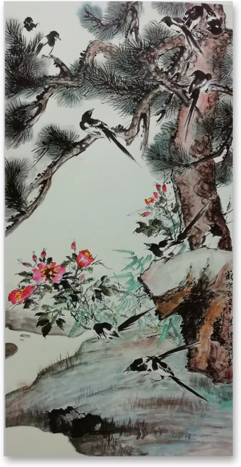 尽管艺术天赋出众,但在那个 “重仕途、轻艺术”“看不起艺术生” 的年代,崔栋还是遵从当时的主流观念,放弃了报考浙江美术学院(现中国美术学院)的机会,考入河南省商业高等专科学校国际贸易专业。大学期间,他对文化课兴趣寥寥,除了体育课几乎很少到校,大部分时间都潜心在家中跟随外公研习书画,三年间创作出大量花鸟、山水习作,笔墨功夫在持续精进中不断沉淀,艺术风格也在临摹与探索中逐渐丰富 —— 他开始广泛涉猎花鸟、山水等多个题材,对任伯年、吴昌硕等名家的笔法精髓多有借鉴与吸收。这份 “不随波逐流,认准目标便全力以赴” 的性格,让他无论身处何种环境,都能坚守对艺术的初心,从未停下笔墨耕耘的脚步。