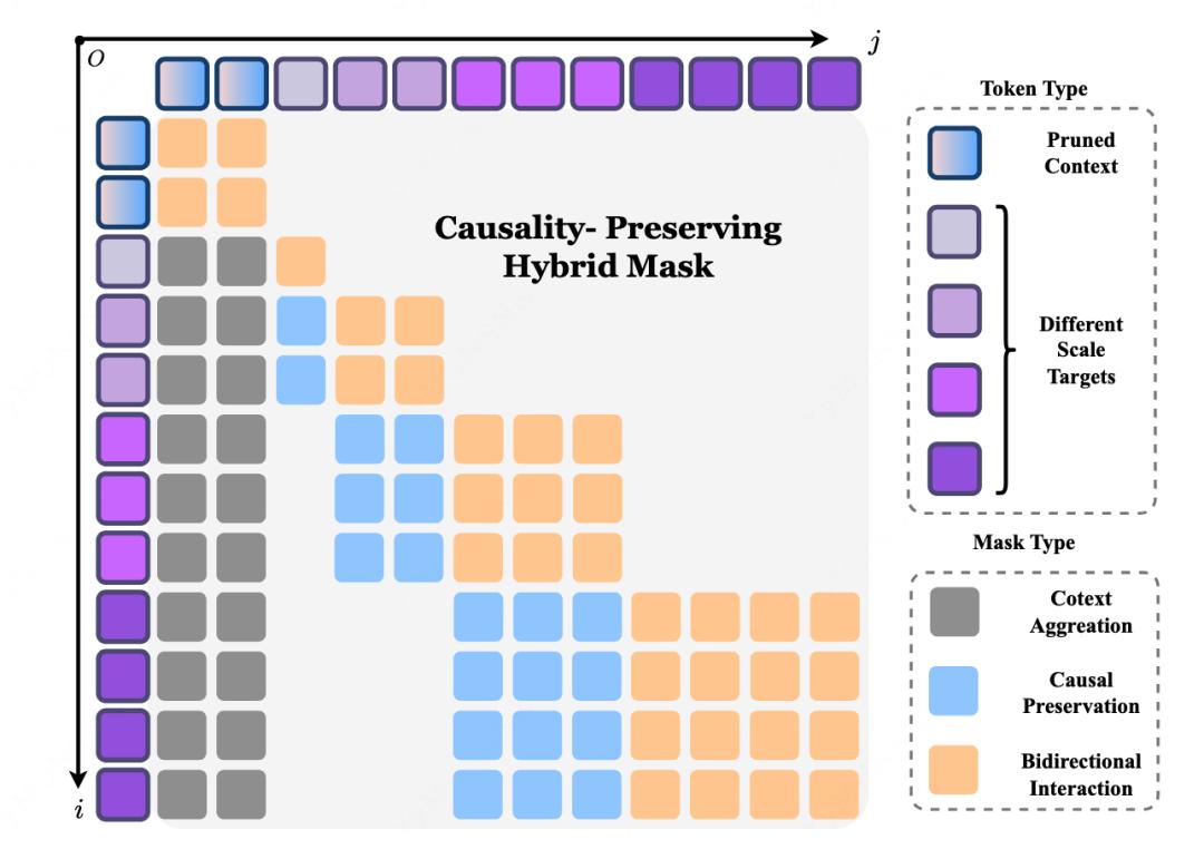 同时,作者还设计了一个 causality-preserving 的注意力机制,保证不同尺度之间的信息流是从粗到细、逐层细化的,而不是相互泄漏。这样一来,多尺度结构就不只是形式上的分解,而是真正具有因果约束的轨迹生成过程。