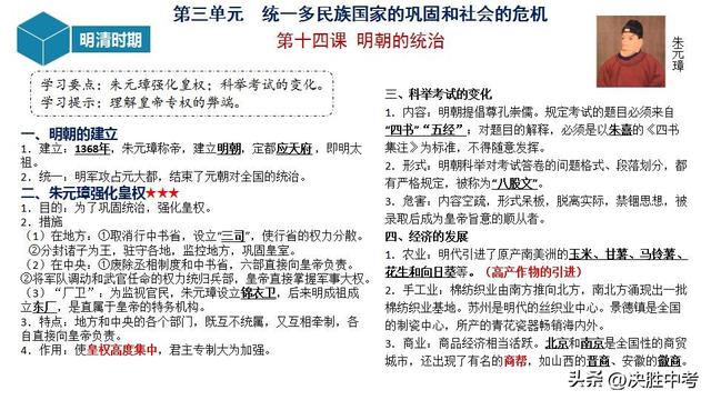 考点1:朝代更迭时间轴隋→唐→五代十国→宋→元,记住这个时间线!重点看隋炀帝暴政(三征辽东、开运河)、唐太宗“天可汗”、宋朝经济南移(“苏湖熟,天下足”)、元朝行省制。考试常考对比题,比如“隋炀帝和唐太宗的统治差异”。