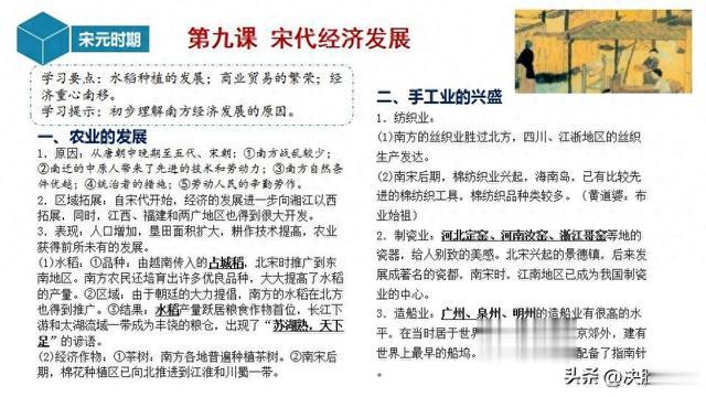 考点3:经济+文化必考组合宋元经济:交子、市舶司、海上丝绸之路。文化看瓦子、元曲(关汉卿《窦娥冤》)、活字印刷。考试喜欢考“经济如何促进文化繁荣”。