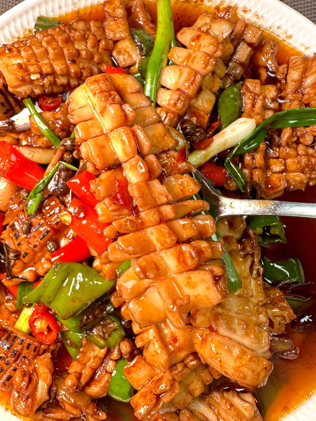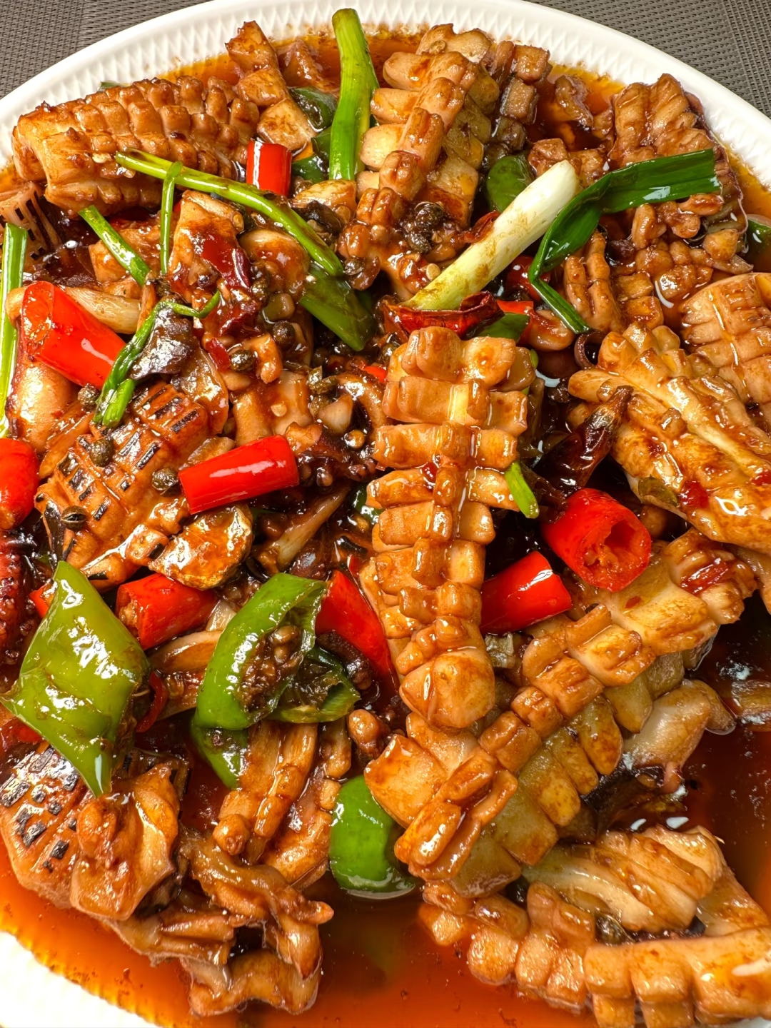 “滋啦——”铁锅里的热油裹着鱿鱼花翻腾起舞,青红椒的香气混着蒜香直往鼻尖钻。夹一筷子送进嘴里,鱿鱼卷在齿间弹跳,脆嫩中带着酱汁的浓香,连配菜的洋葱都浸透了鲜味。这道菜是我从“厨房杀手”逆袭成“家庭厨神”的秘密武器,今天就把压箱底的技巧全盘托出!