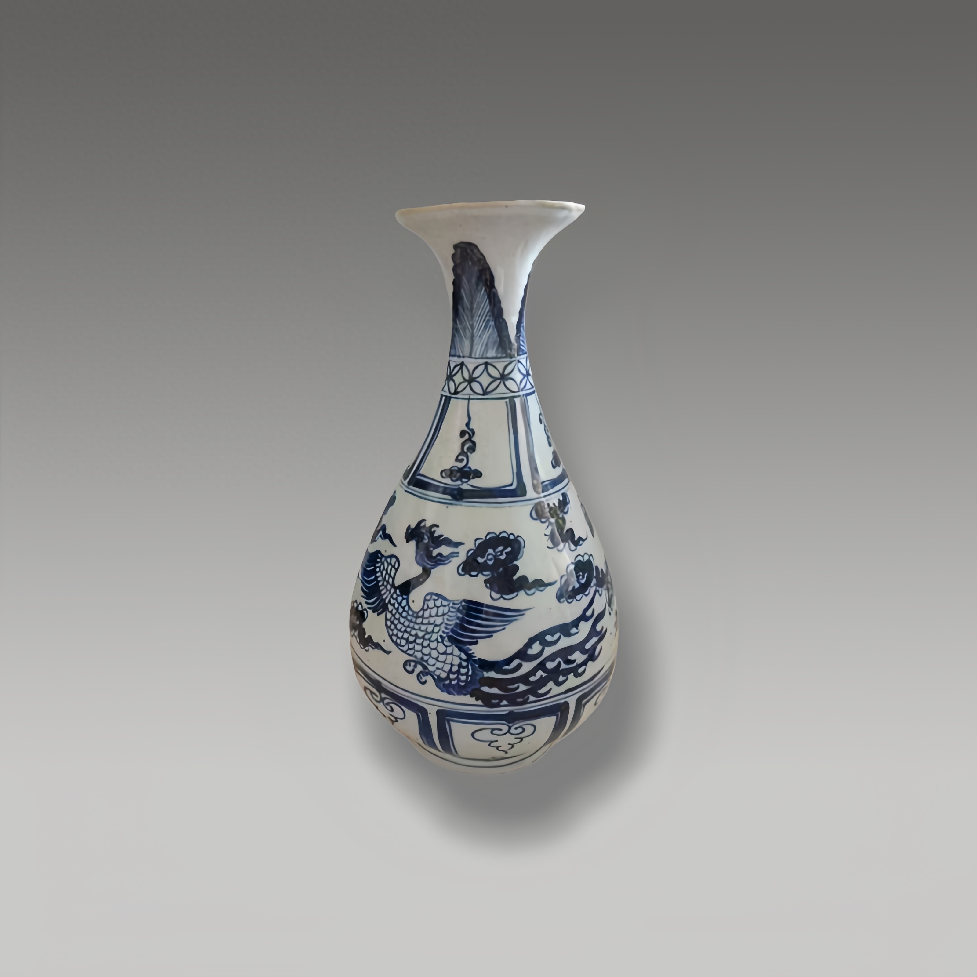 绘工精妙,凤纹灵动飘逸,青花发色浓淡相宜,器型典雅古韵十足,尽显中式瓷艺的美学精髓