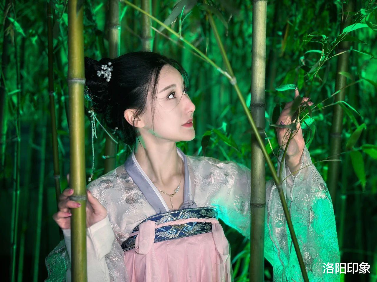 朱阁璀璨入画,罗衣锦绣如云,年轻人裙裾飘飘、团扇遮面穿梭于历史遗迹间、流连在花丛中……