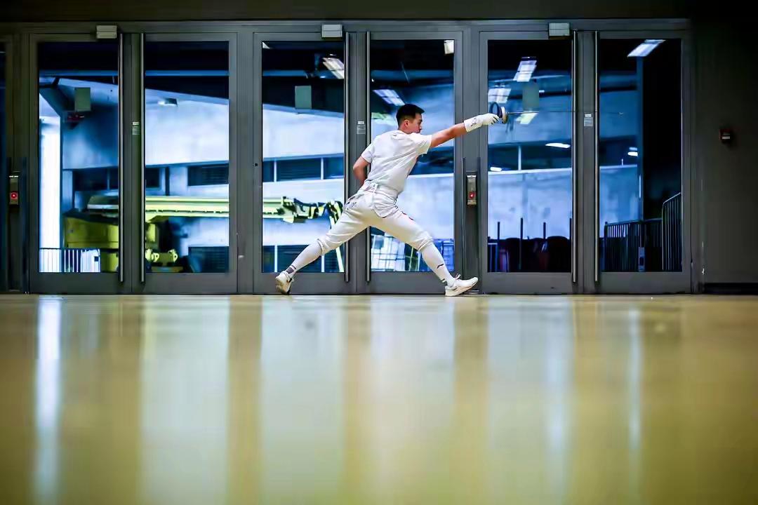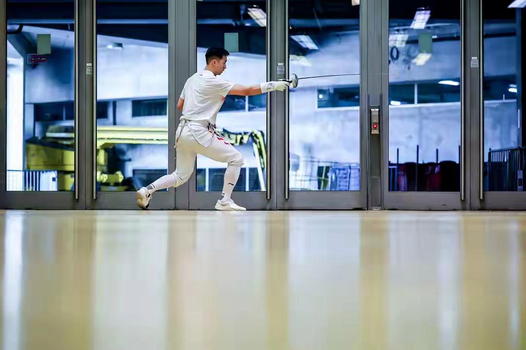 而在赛场边缘的准备区域,另一番景象同样彰显着中国队的严谨与专注。中国选手刘永闯在出战资格赛前,正在进行着细致入微的热身训练。从步伐的移动到出剑的刺击,每一个技术动作都在反复打磨,旨在将身体机能调整至最佳的竞技状态,为即将到来的硬仗做足万全准备。