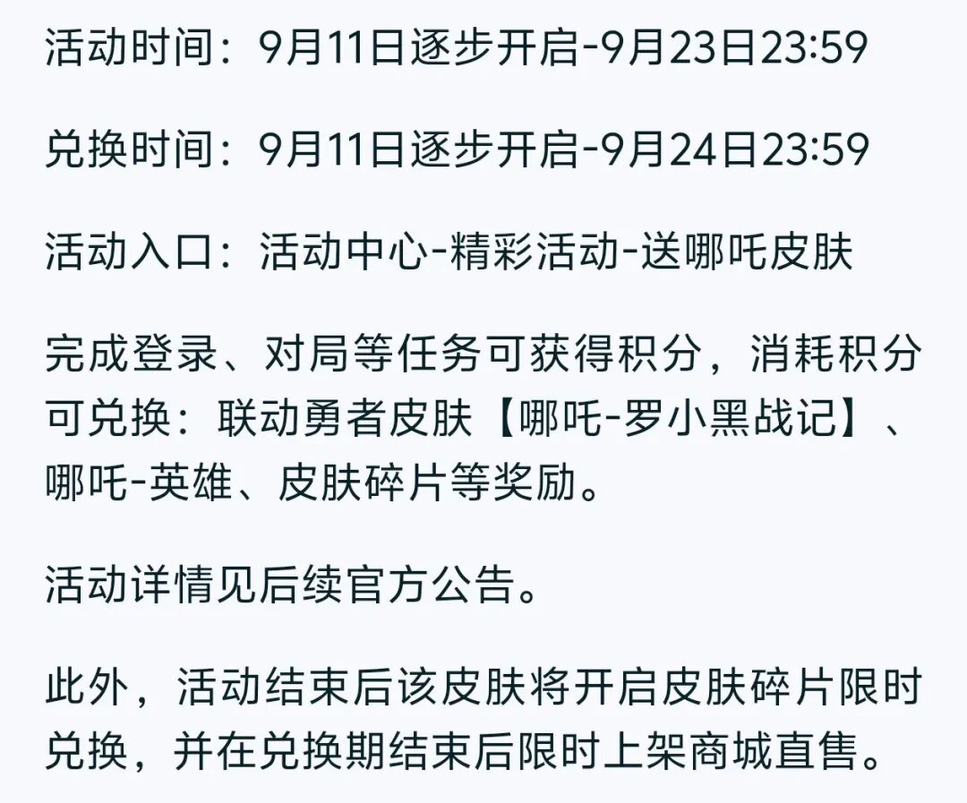 哪吒罗小黑战记皮肤的活动已经开启,需要干一些农活。如果没有时间干农活,或者不想干农活,等活动结束后去皮肤碎片商店兑换就行了。既然是勇者品质,那么应该是需要48个皮肤碎片。