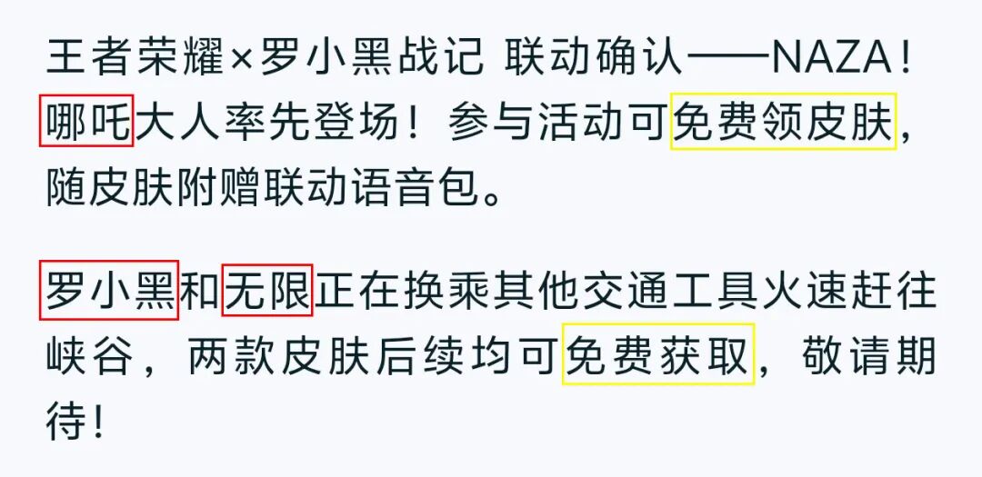 王者荣耀与罗小黑战记的联动并没有取消,而是直接空降了。所以说,网传消息并不一定准确,一切还是得有自己的判断。对于哪吒的这款皮肤联动,个人感觉还是挺不错的,至少获取方式还不错。但是,可能我更期待的是后续王者荣耀与魔童之哪吒闹海联动中的哪吒皮肤。当然,罗小黑战记其余两款皮肤,就冲着这个获取方式,也是值得期待的。