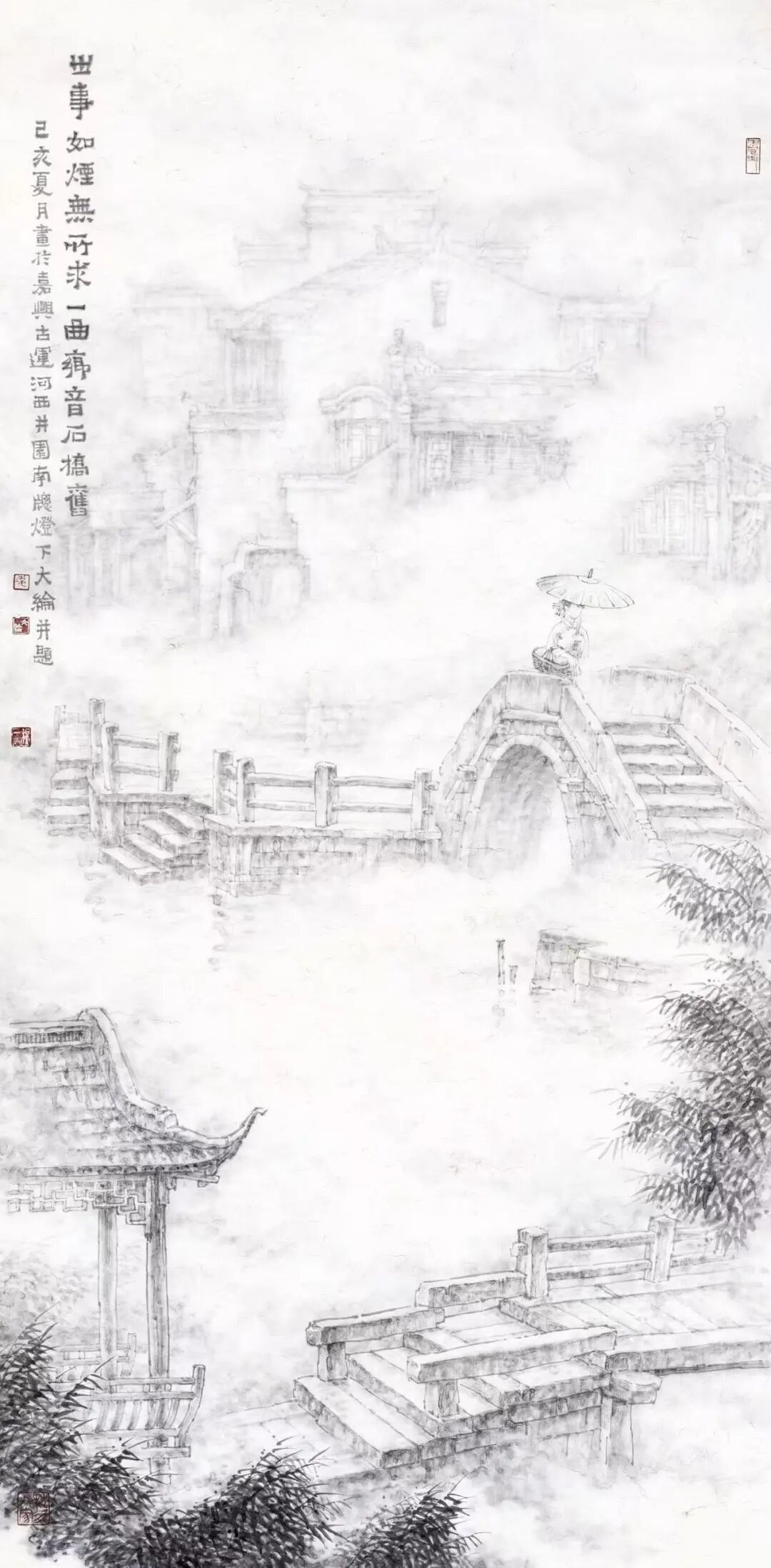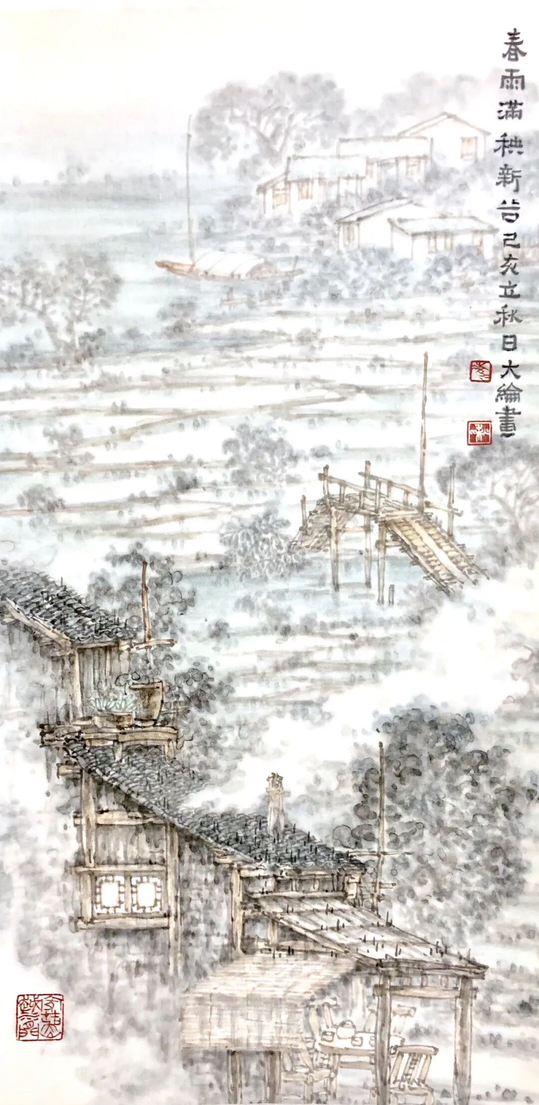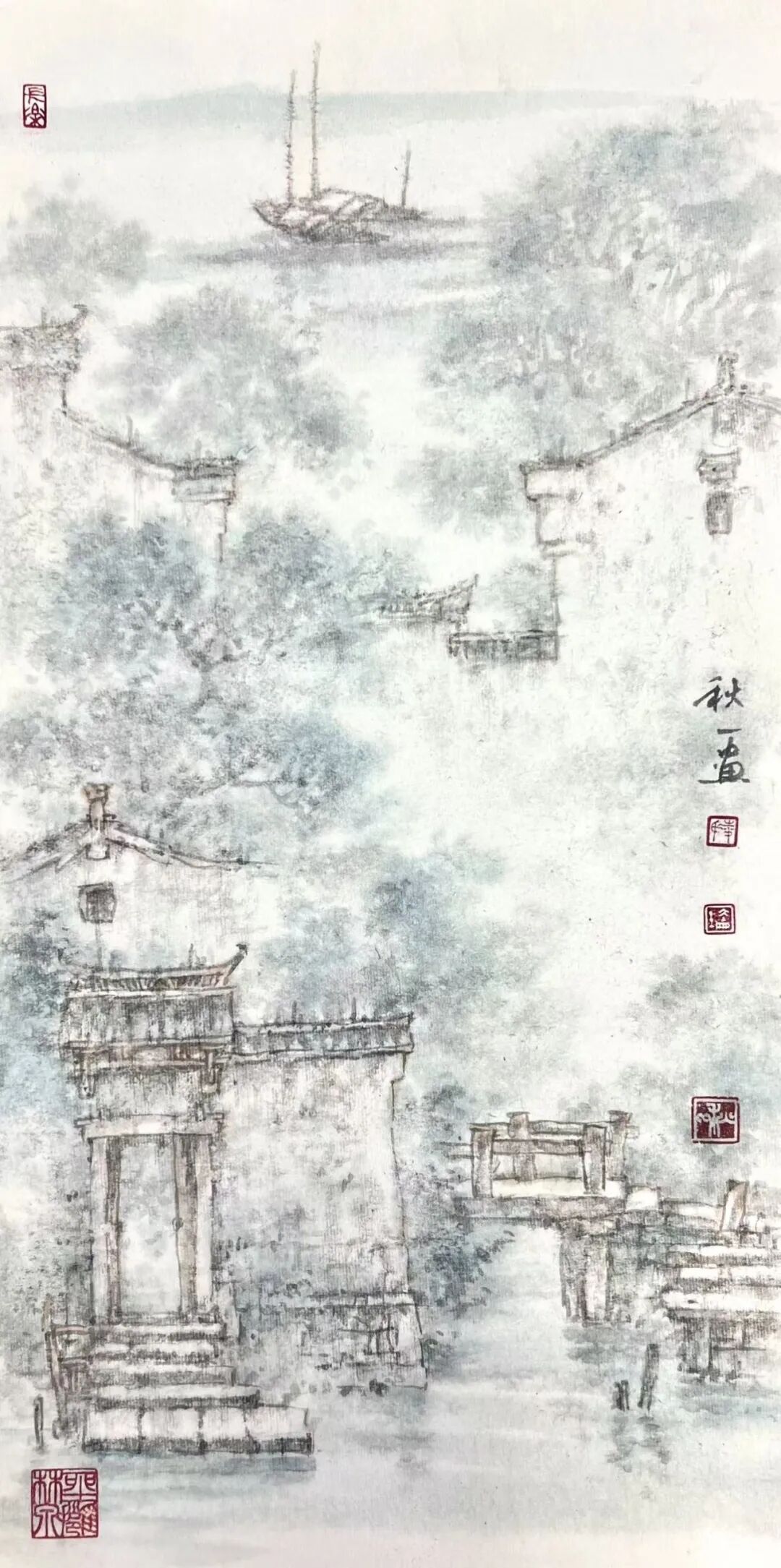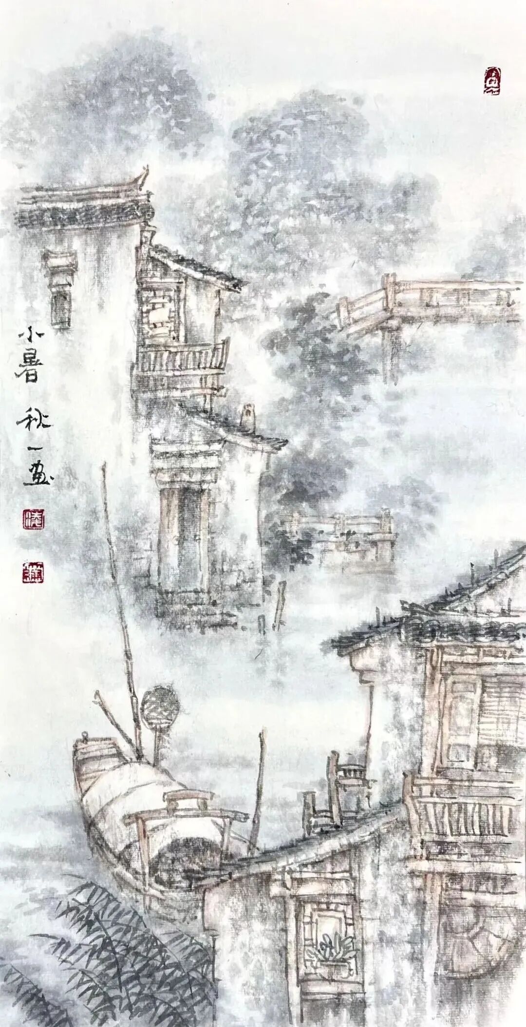 凌大纶别号秋一,1951年6月出生于上海,祖籍浙江湖州。山水画家,擅长描绘水乡田园和古镇风情,以江南烟雨朦胧水气氤氲的表现手法为特色,人称“凌烟云”。曾任嘉兴美术馆馆长、蒲华美术馆馆长、嘉兴画院院长。现为中国美术家协会会员、国家一级美术师、文化部国韵文华书画院艺委会委员、上海江南书画研究院副院长、嘉兴市文史研究馆馆员、嘉兴市政协书画会副会长。