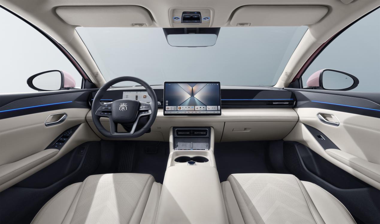 同时,为满足更多用户不同的个性化审美需求,秦L EV全系新增三款富有生命力的全新配色。甜釉粉,是专属于情侣的“心动讯号”,粉中带蓝,温暖甜蜜,车身自带“柔光滤镜”,让人一眼心动;琉璃青是献给年轻人的“气质杀”,以古法琉璃的通透为底,如雨后初晴的天空,通透又富有层次;海晶蓝是送给生活冒险家的“自由宣言”,车色如海浪随角度不断变幻,展现出玻璃棱镜效果,随手一拍就是大片。