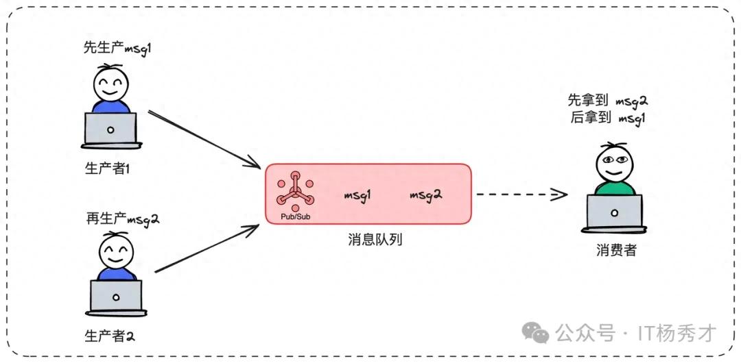 这里有一个非常关键的细节需要理清:所谓的“发送顺序”,并不是指在生产者客户端代码执行send()方法的先后,而是指消息抵达Broker(消息队列服务器)的先后顺序。在一个典型的分布式环境下,假设生产者A和生产者B,A在10:00:00.000时执行了发送动作,但由于网络抖动、GC停顿等原因,其消息msg1在10:00:00.500时才到达Broker;而生产者B在10:00:00.100时发送的msg2,却在10:00:00.300时就抵达了Broker。那么从Broker的视角看,msg2就是先于msg1的。