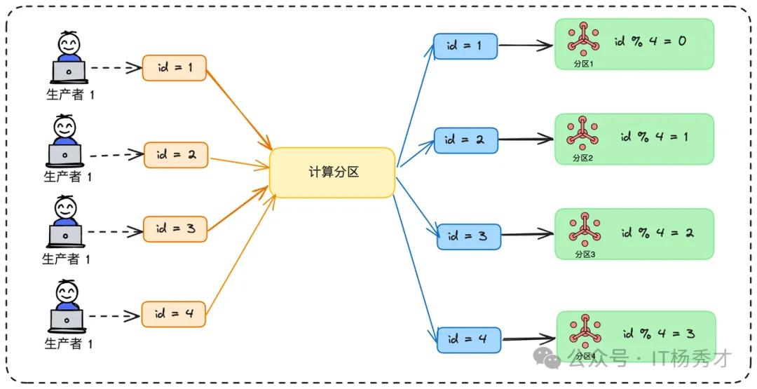 更重要的是,它丝毫没有解决生产者端和Broker端的单点写入压力问题。既然我们已经有了“按业务ID哈希分发”的思想,为什么不更进一步,直接利用消息队列自身成熟、可靠的分区机制,来实现一个更原生的方案呢?