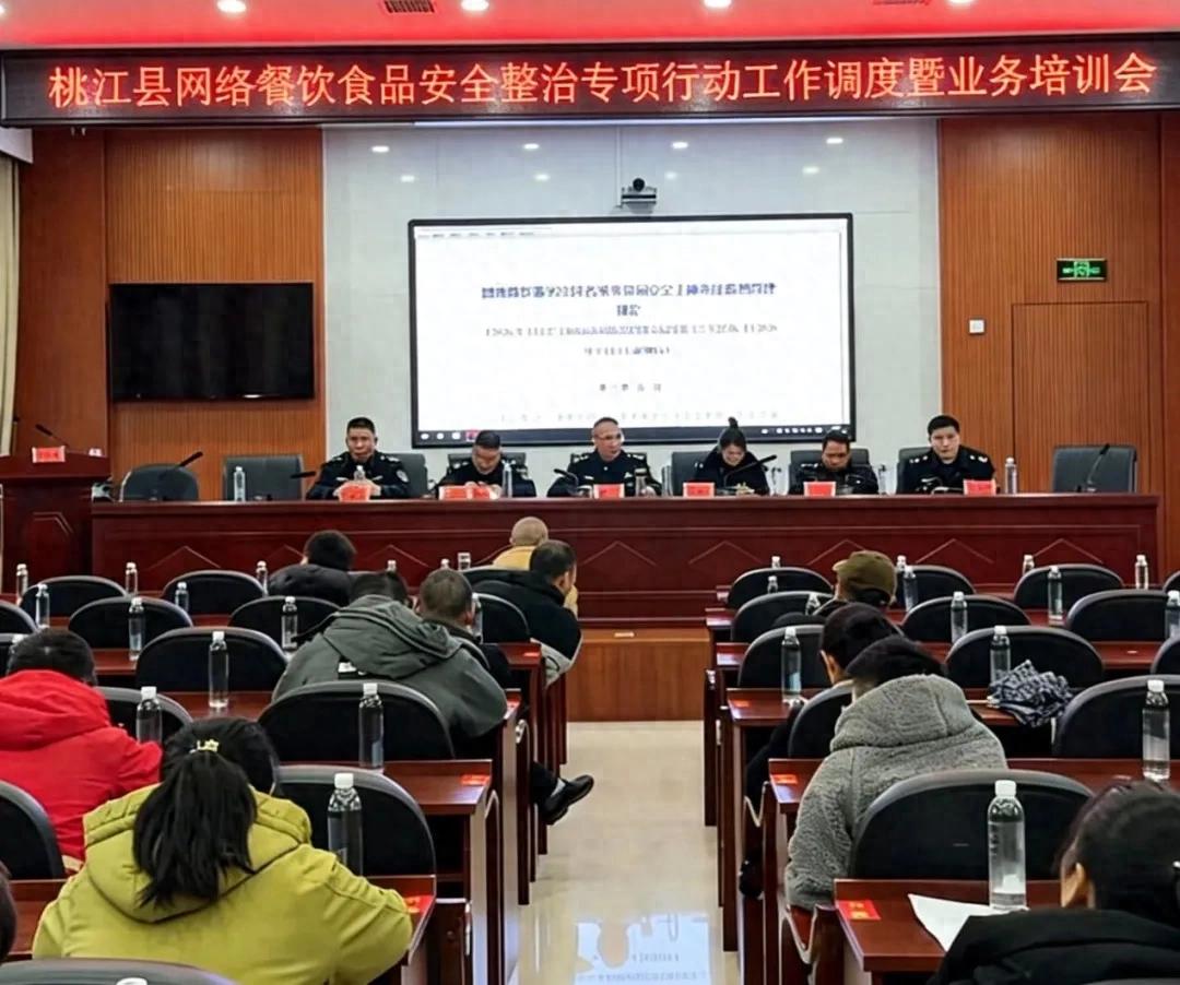 3月18日上午,桃江县市场监督管理局召开网络餐饮食品安全整治专项行动工作调度暨业务培训会,本地外卖平台负责人、网络餐饮门店业主及局相关执法人员百余人参加。会上,围绕《餐饮服务食品安全操作规范》、总局123号令《网络餐饮服务经营者落实食品安全主体责任监督管理规定》及风险提示等内容开展培训,相关负责人就专项行动推进、责任落实等工作进行强调部署。