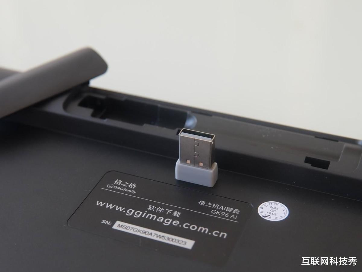 在细节上GK96 AI键盘也有小惊喜,虽然主打的超薄的设计,整个略带倾斜角的设计,支撑起来打字再多手腕也不累,符合人体工学,同时在底部还有硅胶垫的设计,打字声音很轻,不会影响到他人,小小的2.4G 接收器还可以藏在键盘背面的凹槽里,再也不怕丢了,这些小贴心的设计,真的太棒了。