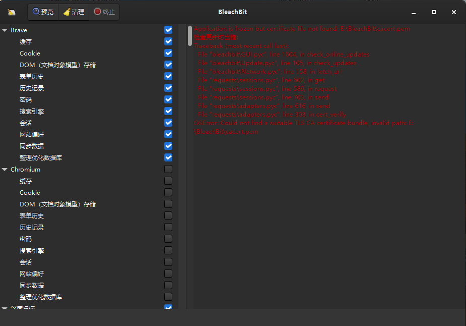 BleachBit 的核心功能在于深度清理系统垃圾文件,释放存储空间,提升系统性能,实测下来效果好于ccleaner,差于磨针c盘清理,原因可能在于毕竟是国外软件,对国内的软件适配度不高。它能够清理的内容包括: