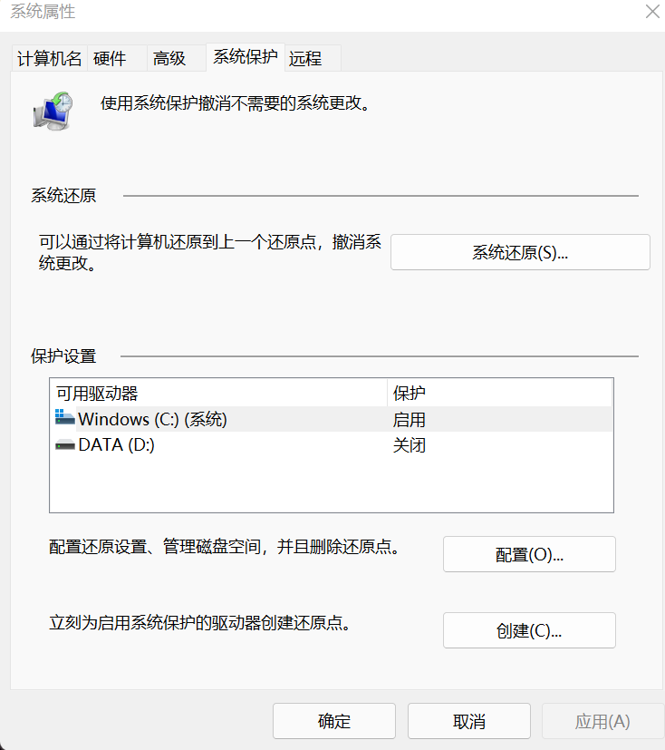 或者如果你觉得不需要此项功能 也可以禁用系统保护。