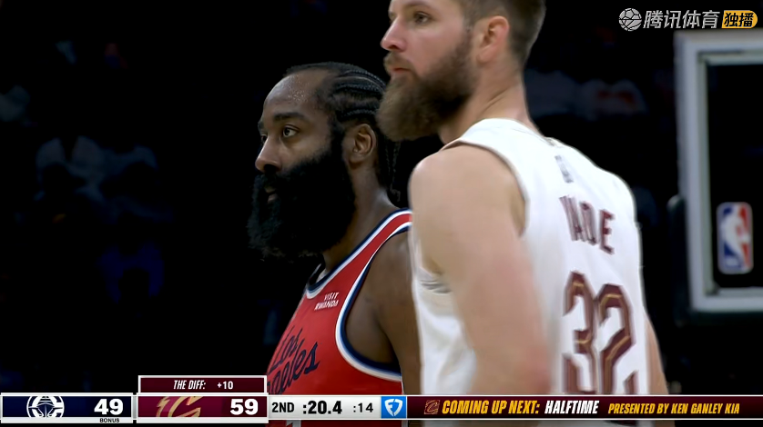 52-59,半场结束快船暂时落后骑士7分。