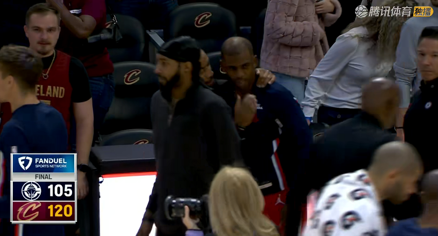 比赛结束,哈登没有停留,起身走入球员通道,保罗走向骑士替补席,和骑士球员、教练组成员逐一拥抱致意。