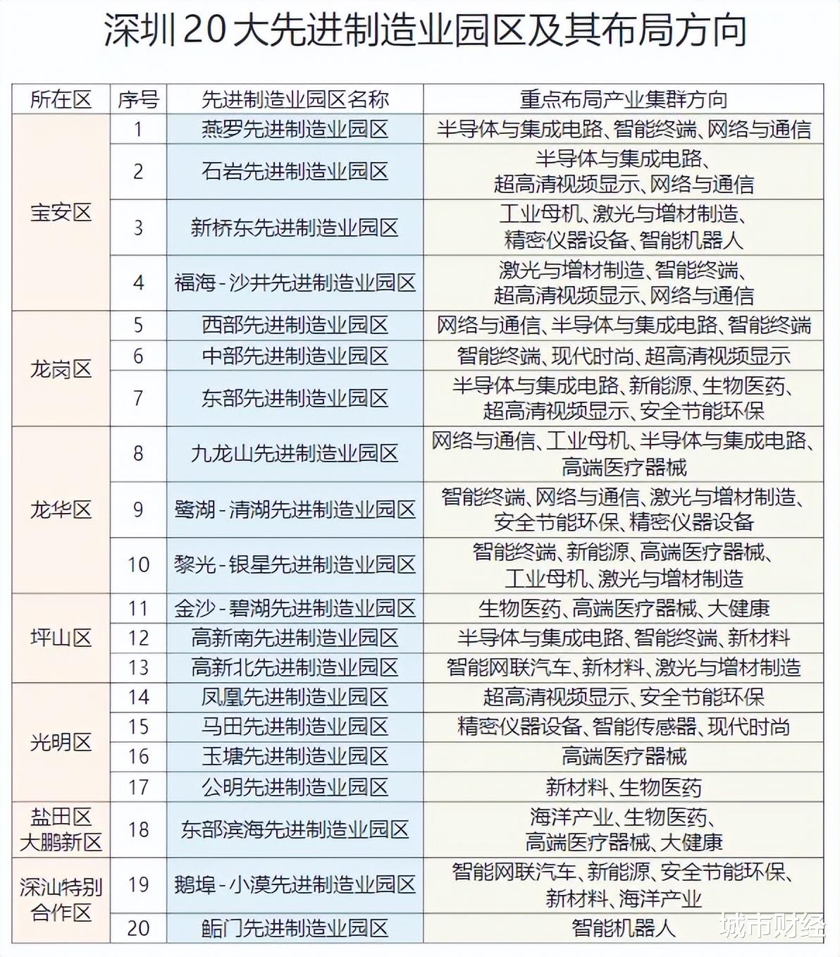 2022年深圳发布了《深圳市20大先进制造业园区空间布局规划》,其中明确提到未来重点布局的产业: