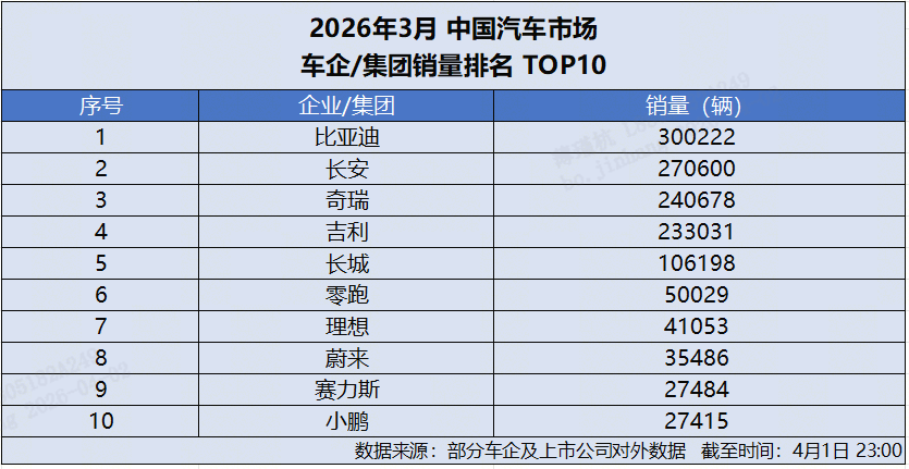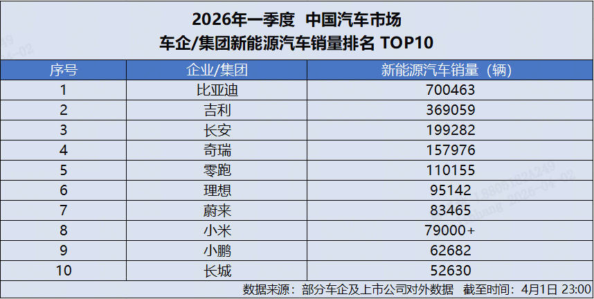 4月1日,比亚迪发布2026年3月产销数据,单月总销量达300222辆,强势突破30万辆大关,再添荣耀战绩,斩获中国车企销量冠军,并连续58个月蝉联中国新能源汽车销量冠军,持续稳固行业龙头地位。截至目前,比亚迪新能源汽车累计销量已超1580万辆,一季度累计销售700463辆,以硬核数据印证技术与规模双重实力。