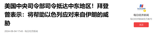 面对日益紧张的局势,美国总统拜登不得不亲自出马。8月1日,拜登与以色列总理内塔尼亚胡通话,重申美国对以色列的安全承诺和防御支持。