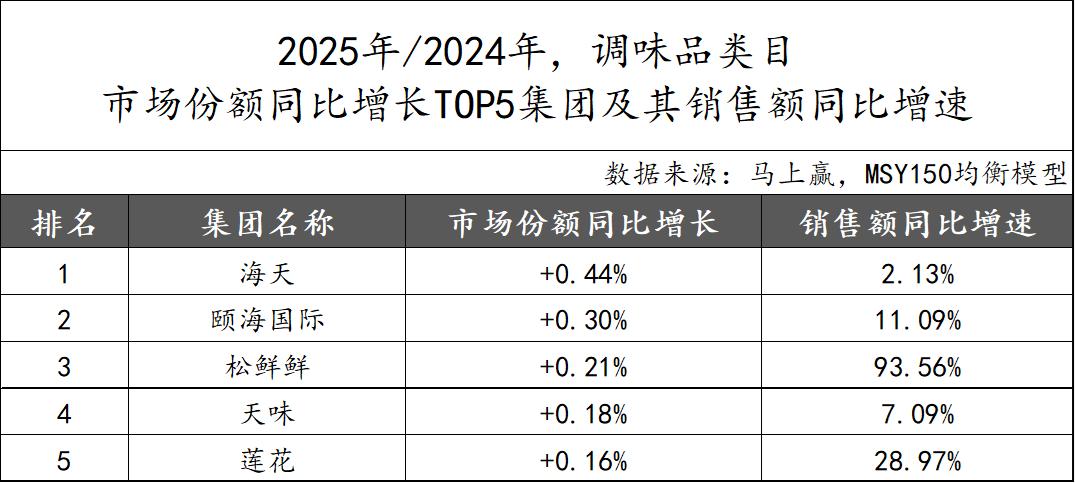 在TOP增长集团中,值得关注的是松鲜鲜与天味,其中松鲜鲜依靠松茸鲜类型提鲜粉的快速增长已经连续第二年在TOP增长集团前五中,其销售额同比增速也依然超过90%,保持快速增长。