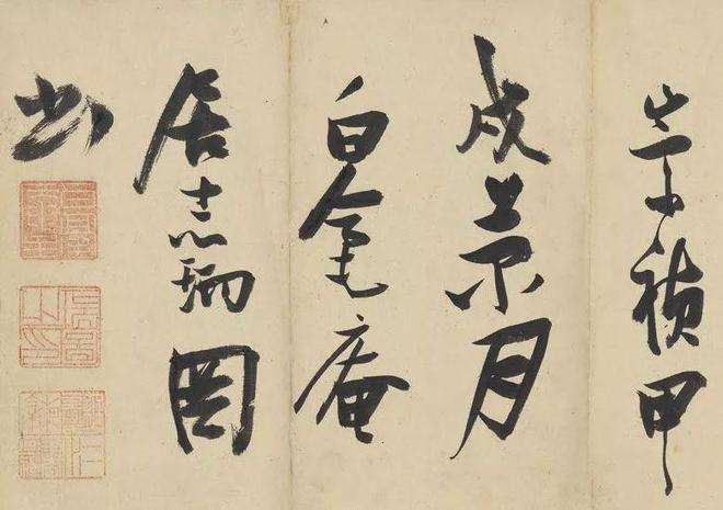 不论是明初的“三宋”“二沈”,中期的祝允明、文微明,或是与张瑞图并称的邢侗、董其昌和米万钟,尽管他们都以各自的艺术成就在明代书坛占有一席之地,但从总的风格特征来看,这些人的作品仍是在“二王”中,而张瑞图可以说是晚明新书派出现的标志。在年龄上,他比当时声名煊赫的董其昌小15岁,比邢侗小 19 岁,比黄道周大15岁,比王铎大 22岁,比倪元璐大 23 岁。处在这样一个时间段,其书法无论是面貌还是意蕴,都与前人不同。这也正是其后的黄道周、王铎、倪元璐等人书法所具备的共同点,因此张瑞图的重要性不言而喻。