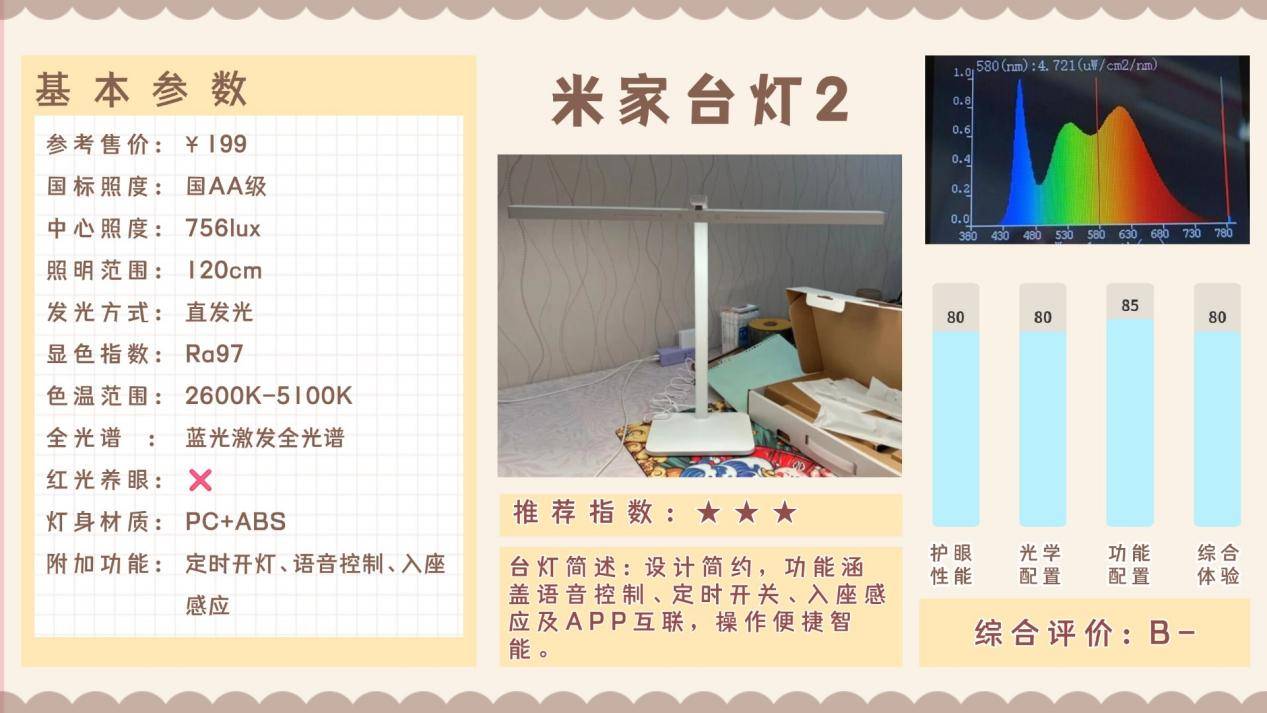 适用人群:已接入米家生态的家庭,适合追求智能控制+大桌面照明,但对蓝光防护要求不高的用户。