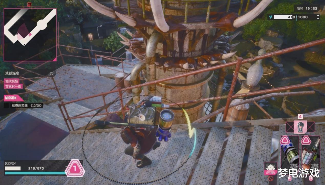 游戏也在战斗部分做了设计,以前我们可能还在纠结武器切换,现在直接实现了双持自由。你可以左手拿长柄电风扇右手拿带着钉子的棒球棒,化身地狱绞肉机,近身或者远距离都能有操作空间。