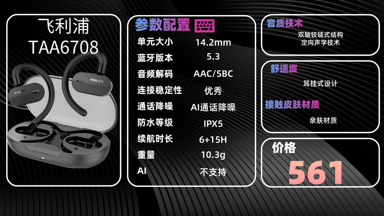 开放式耳机音质排行榜Top8:飞 利浦TAA6708